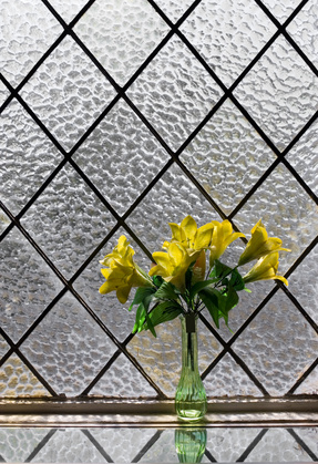De nombreux types de vitrages ornementaux permettent de bloquer le regard sans opacifier la vitre :
