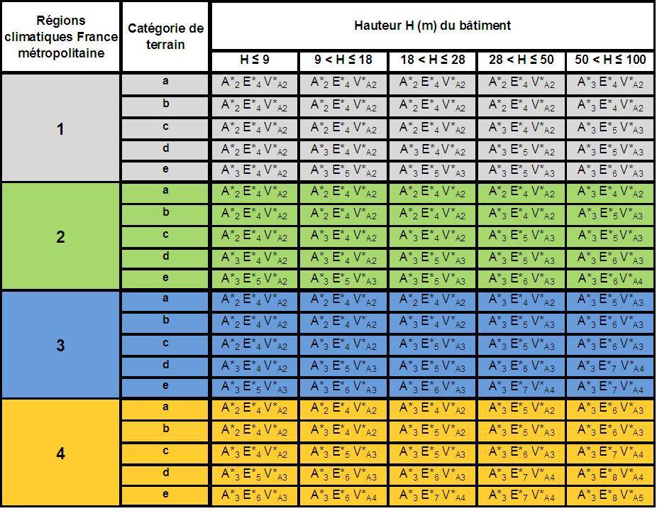 Après avoir déterminé votre zone climatique, la situation de votre habitation et la hauteur de la fenêtre par rapport au sol, vous pouvez maintenant définir le classement AEV optimal grâce au tableau suivant: